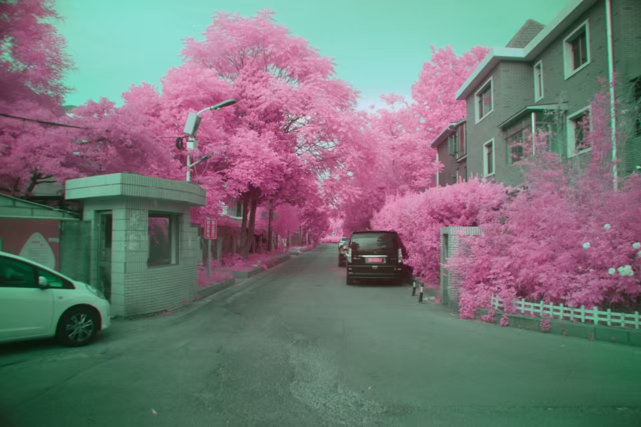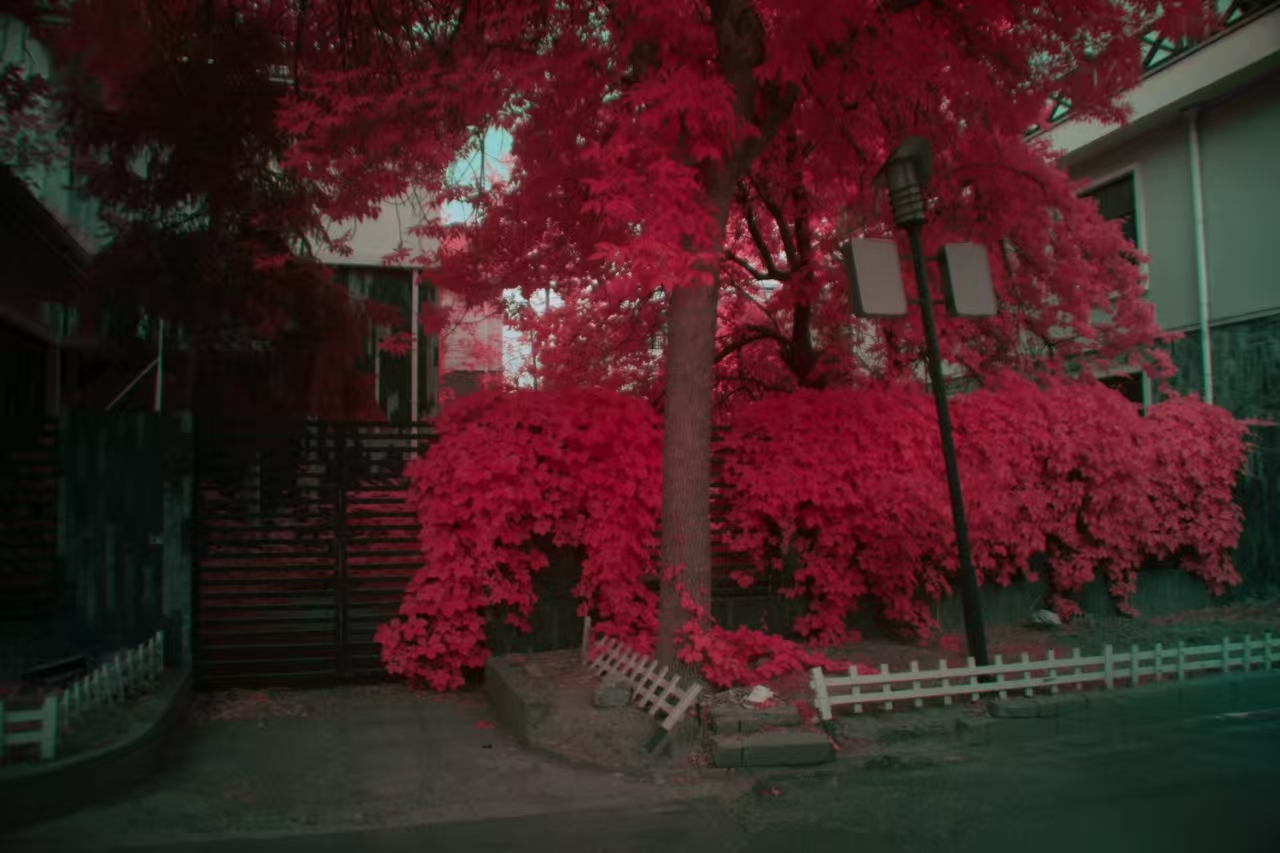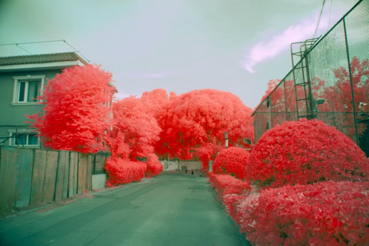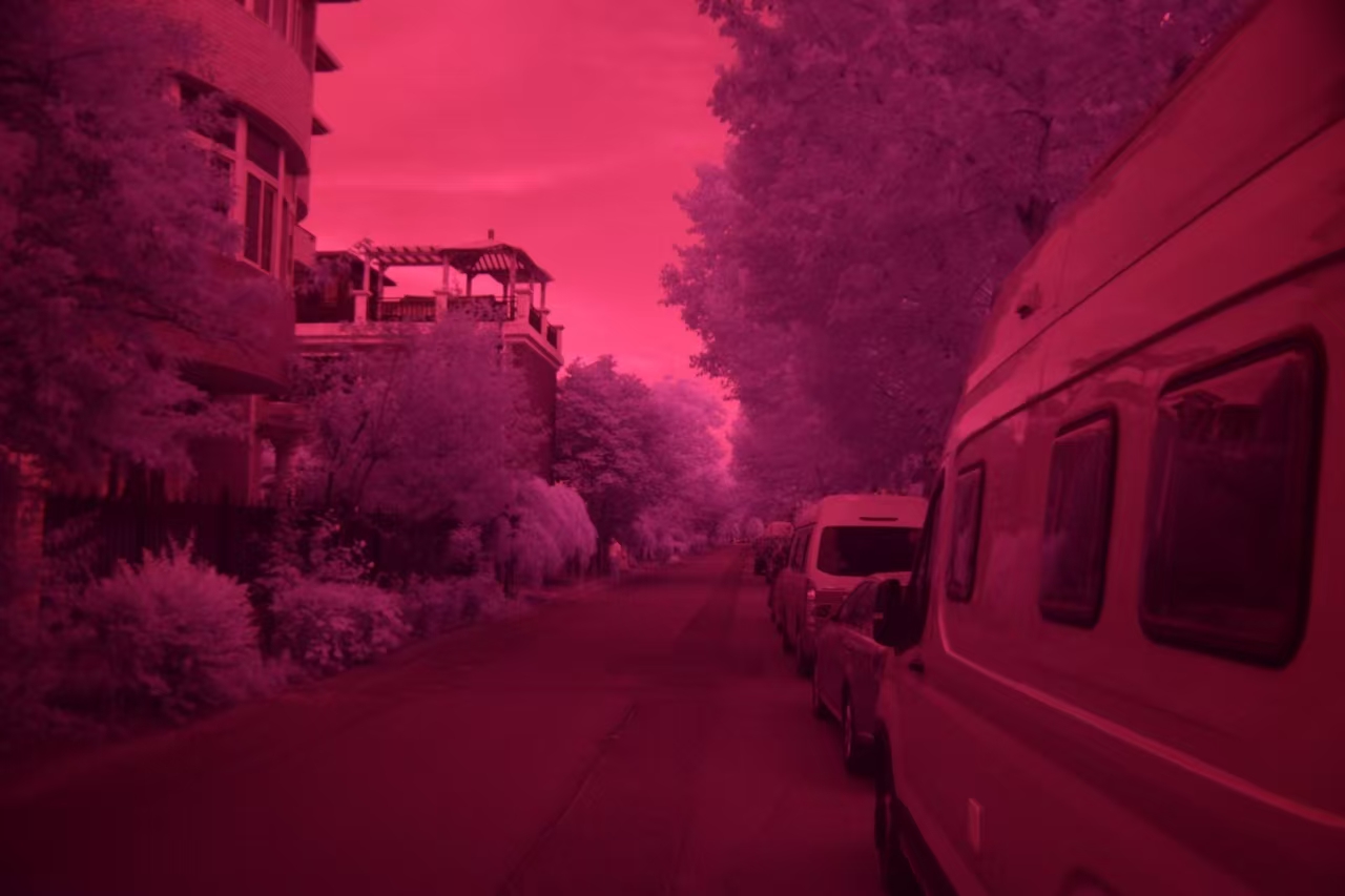 590nm - 680nm(彩色红外): 允许较多可见光进入,能产生丰富的色彩,通过后期通道互换可以创造出“伍德效应”下的紫色/黄色树叶。