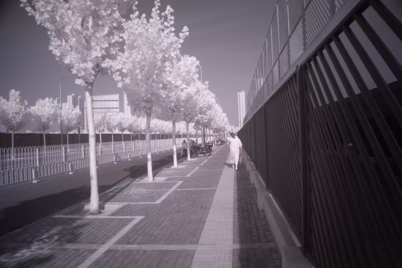 720nm(标准黑白红外): 最经典的红外效果。树叶呈亮白色,天空深暗,对比强烈,主要呈现黑白或棕褐色调。