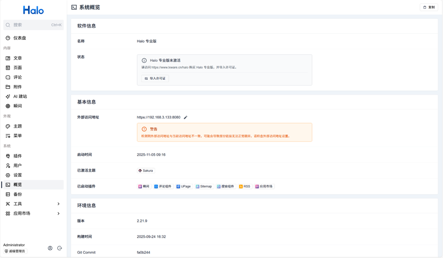 .在新的标签页里,打开浏览器,访问您的 Halo 安装地址: