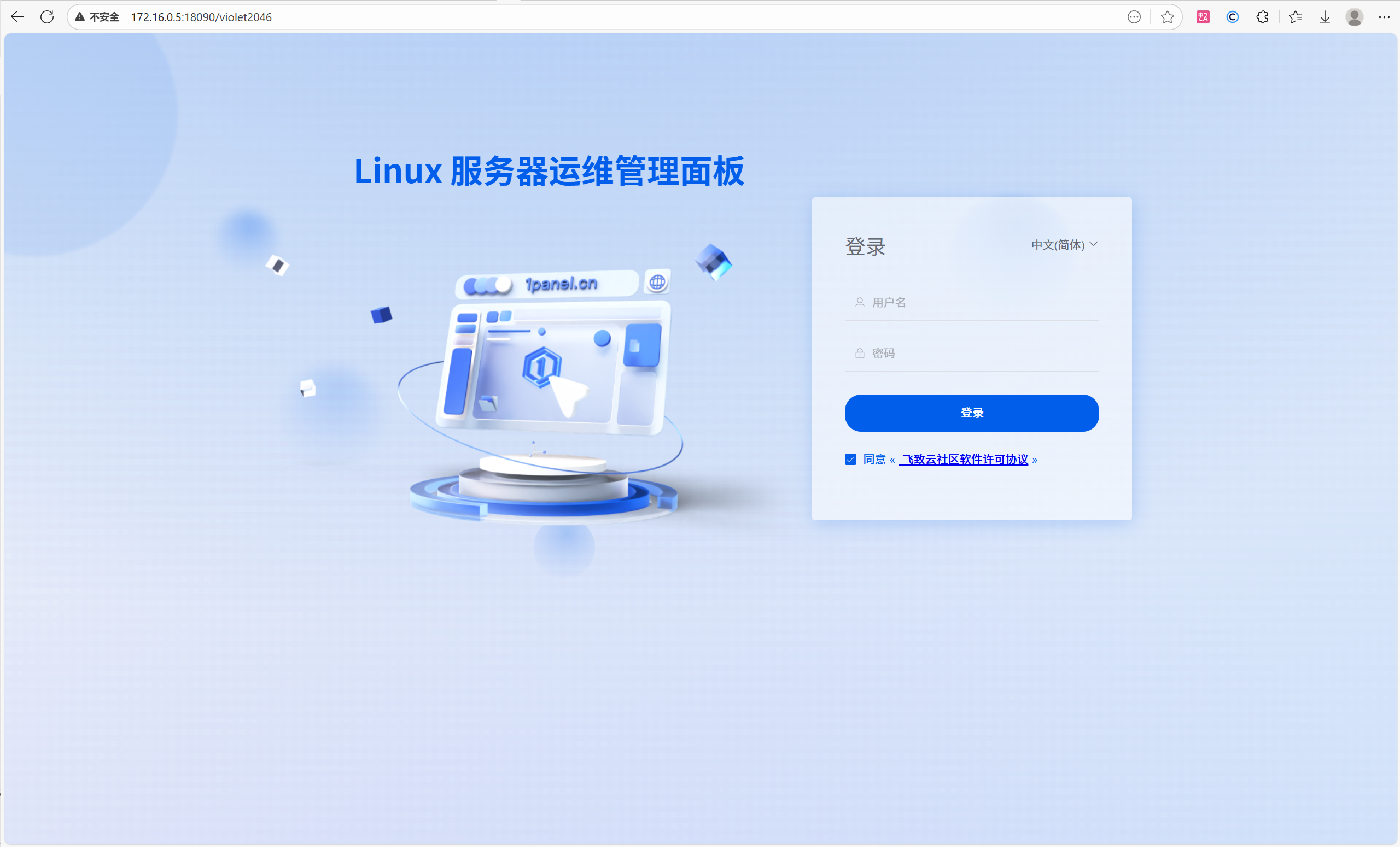 安装好1panel后,双击打开,这里可能会提示无访问权限。这时候请在地址栏中如图输入访问码,我这里设置的是violet2046。之后输入用户名和密码部分,输你设置的密码和用户名即可,之后会跳转到本地端口上的一个控制面板,这里用户名和账号密码输自己设置的,同上。
